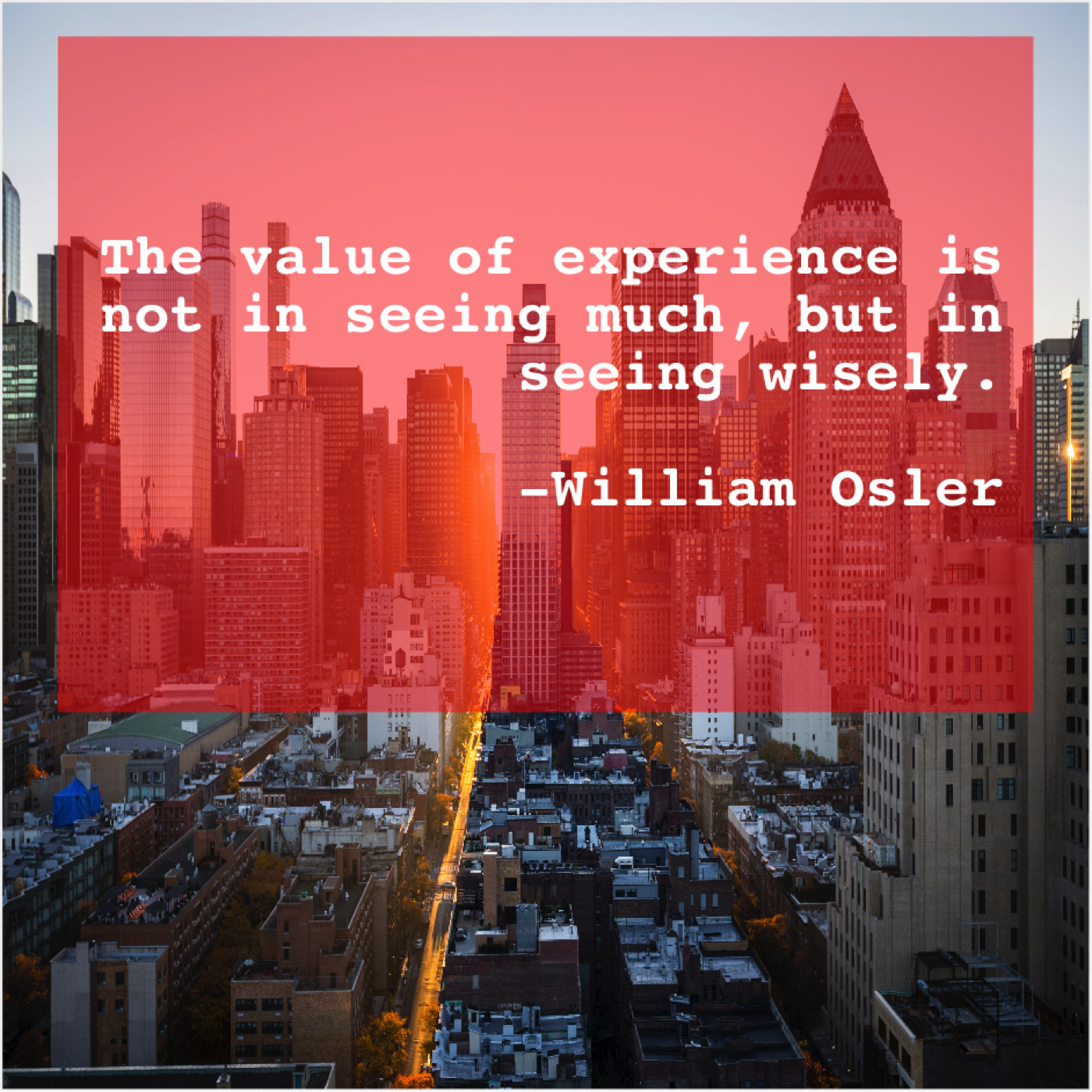 William Osler William Osler – The value of experience is… November 12, 2018 admin “The value of experience is not in seeing much, but in seeing wisely.”-William Osler