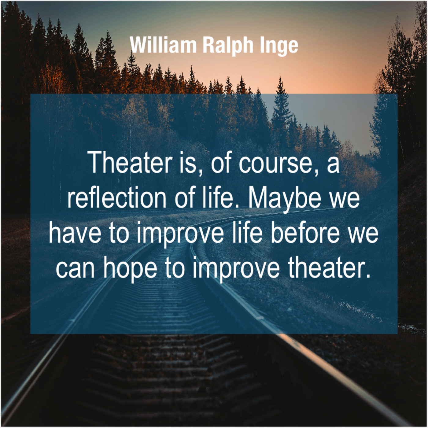 William Ralph Inge William Ralph Inge – Theater is, of course, a… December 2, 2018 admin “Theater is, of course, a reflection of life. Maybe we have to improve life before we can hope to improve theater.”-William Ralph Inge