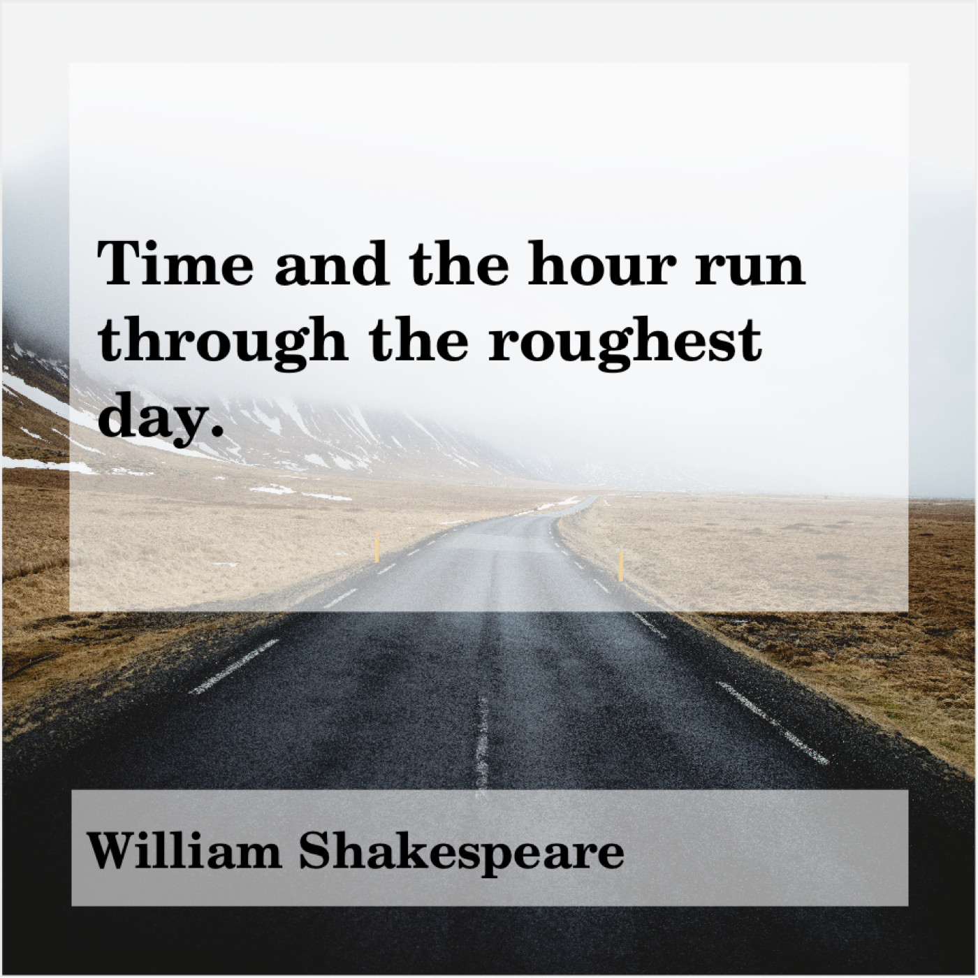 William Shakespeare William Shakespeare – Time and the hour run… July 14, 2019 admin “Time and the hour run through the roughest day.”-William Shakespeare