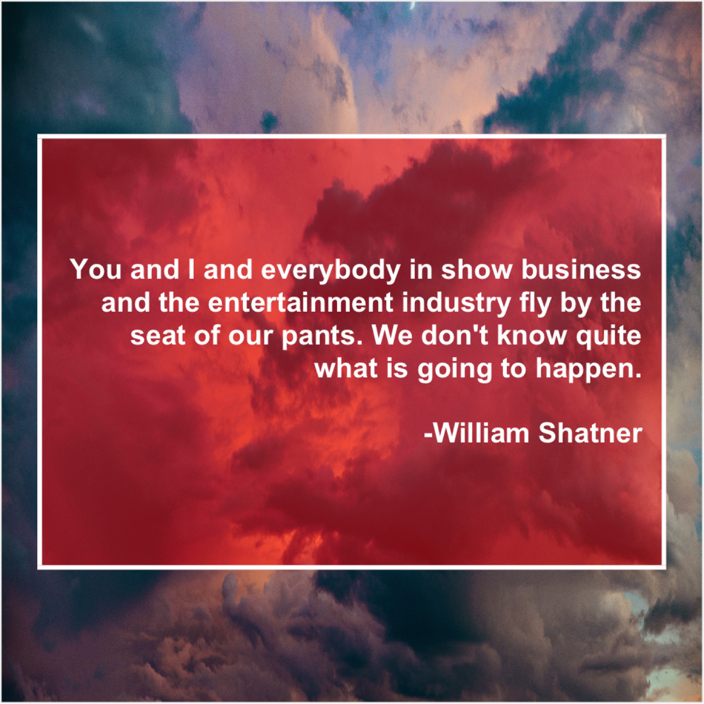 William Shatner William Shatner – You and I and everybody… June 4, 2019 admin “You and I and everybody in show business and the entertainment industry fly by the seat of our pants. We don’t know quite what is going to happen.”-William Shatner