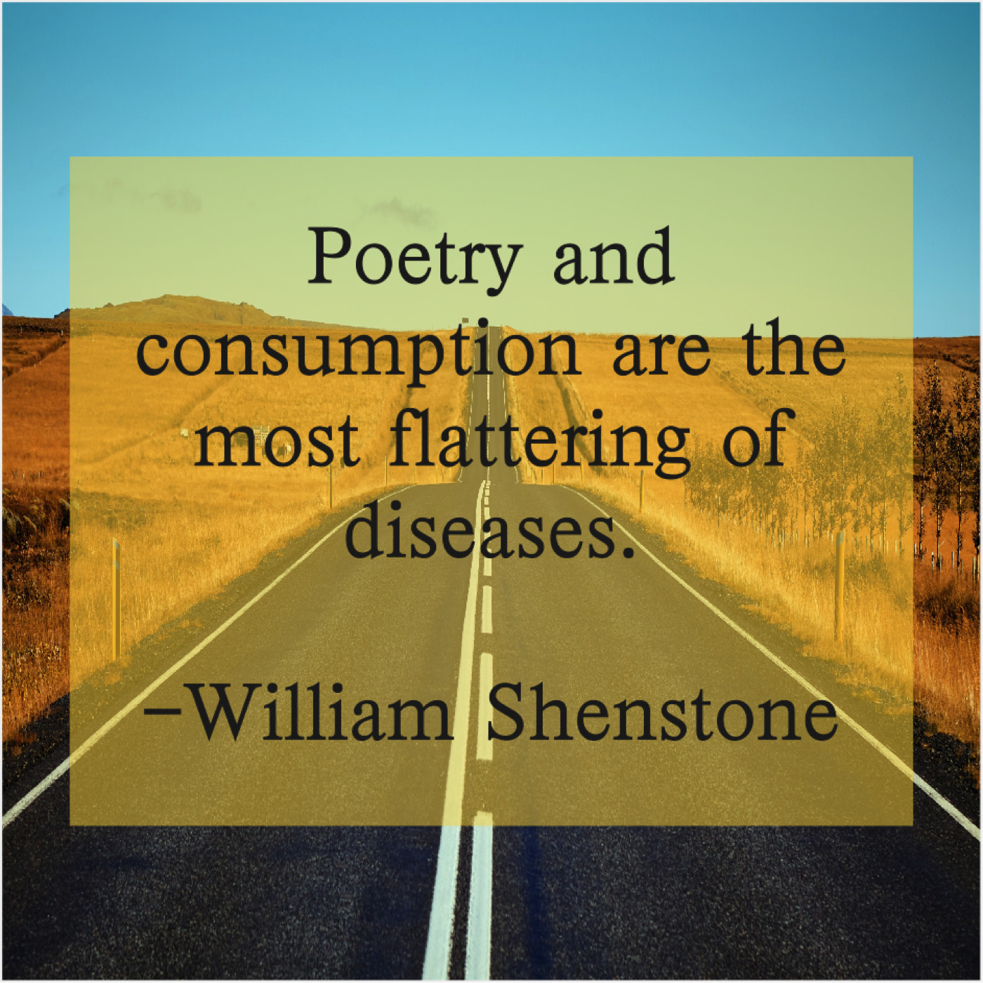 William Shenstone William Shenstone – Poetry and consumption are the… April 5, 2019 admin “Poetry and consumption are the most flattering of diseases.”-William Shenstone