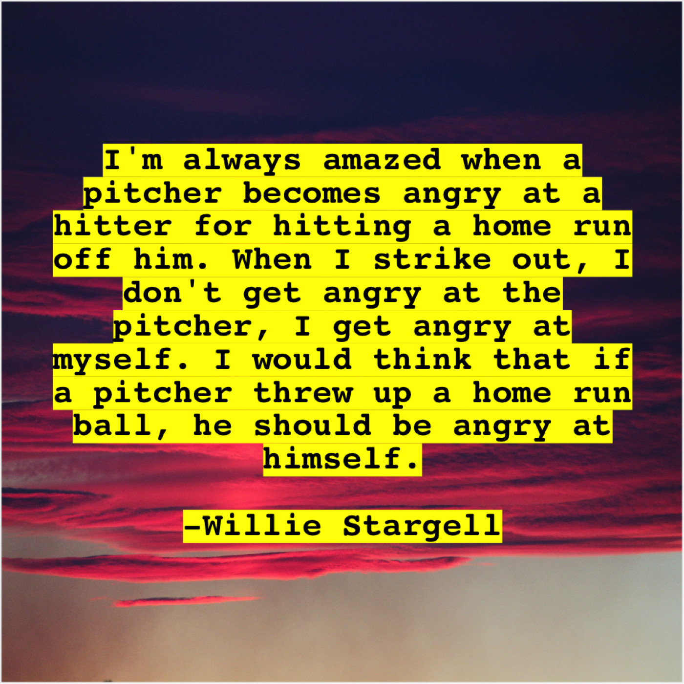 “I’m always amazed when a pitcher becomes angry at a hitter for hitting a home run off him. When I strike out, I don’t get angry at the pitcher, I get angry at myself. I would think that if a pitcher threw up a home run ball, he should be angry at himself.”