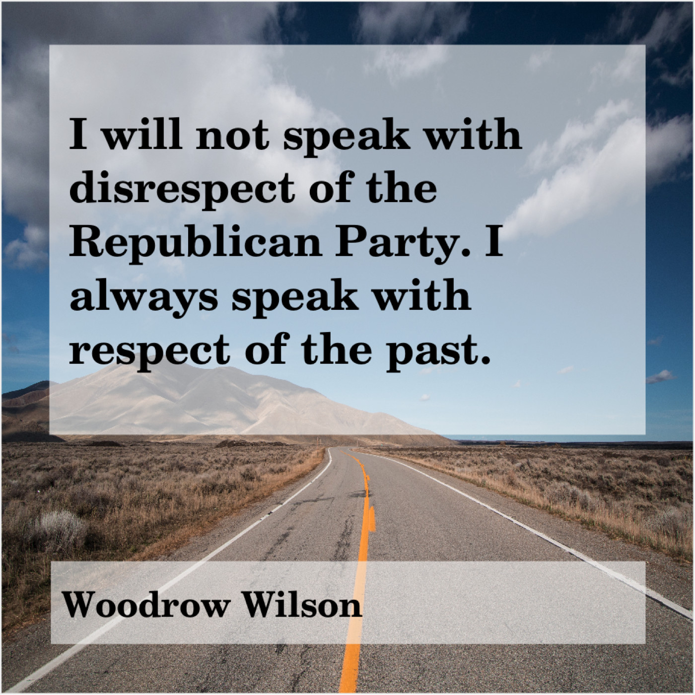 Woodrow Wilson Woodrow Wilson – I will not speak with… March 20, 2019 admin “I will not speak with disrespect of the Republican Party. I always speak with respect of the past.”-Woodrow Wilson