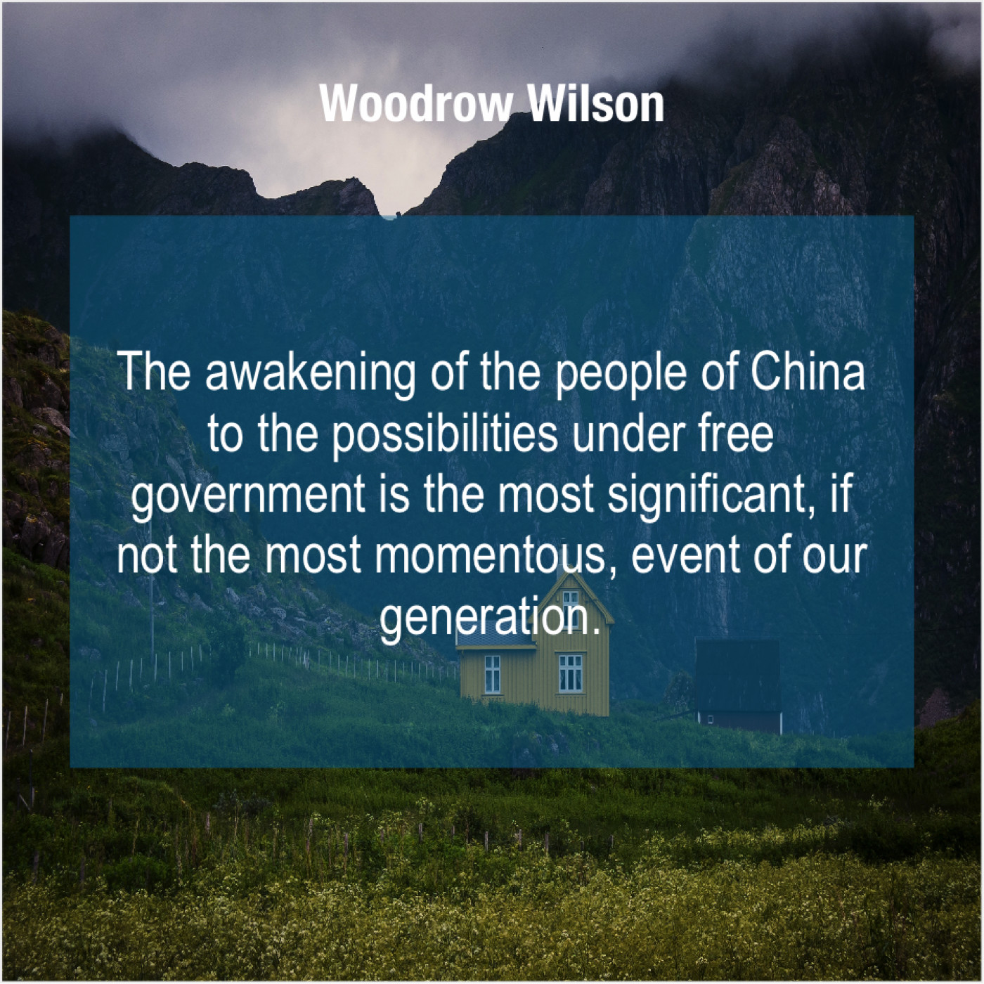 Woodrow Wilson Woodrow Wilson – The awakening of the people… June 18, 2019 admin “The awakening of the people of China to the possibilities under free government is the most significant, if not the most momentous, event of our generation.”-Woodrow Wilson