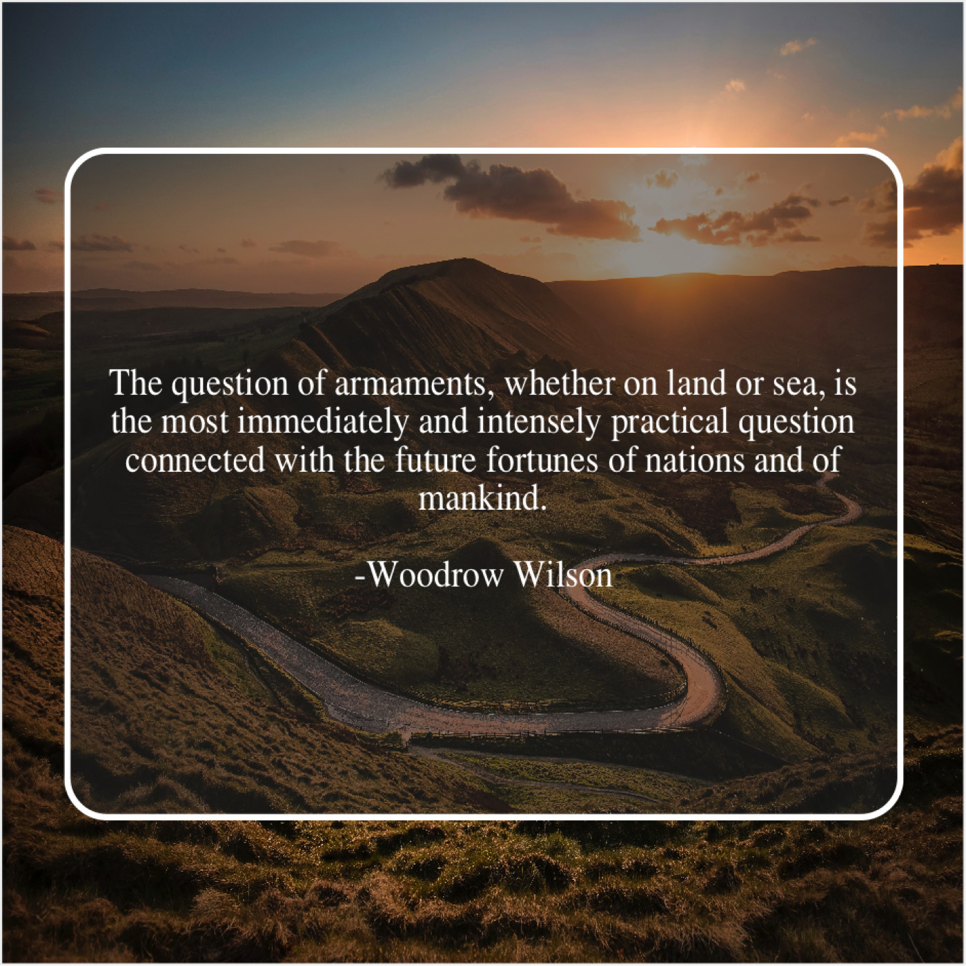 Woodrow Wilson Woodrow Wilson – The question of armaments, whether… December 1, 2018 admin “The question of armaments, whether on land or sea, is the most immediately and intensely practical question connected with the future fortunes of nations and of mankind.”-Woodrow Wilson