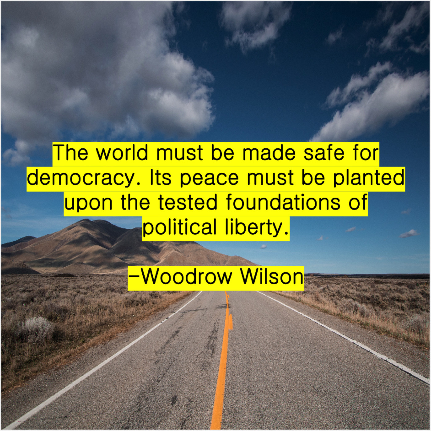 Woodrow Wilson Woodrow Wilson – The world must be made… March 2, 2019 admin “The world must be made safe for democracy. Its peace must be planted upon the tested foundations of political liberty.”-Woodrow Wilson