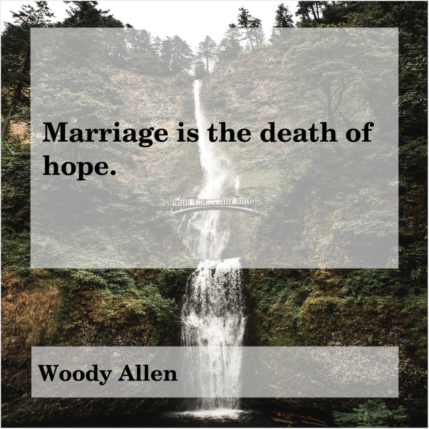 Woody Allen Woody Allen – Marriage is the death of… April 21, 2019 admin “Marriage is the death of hope.”-Woody Allen