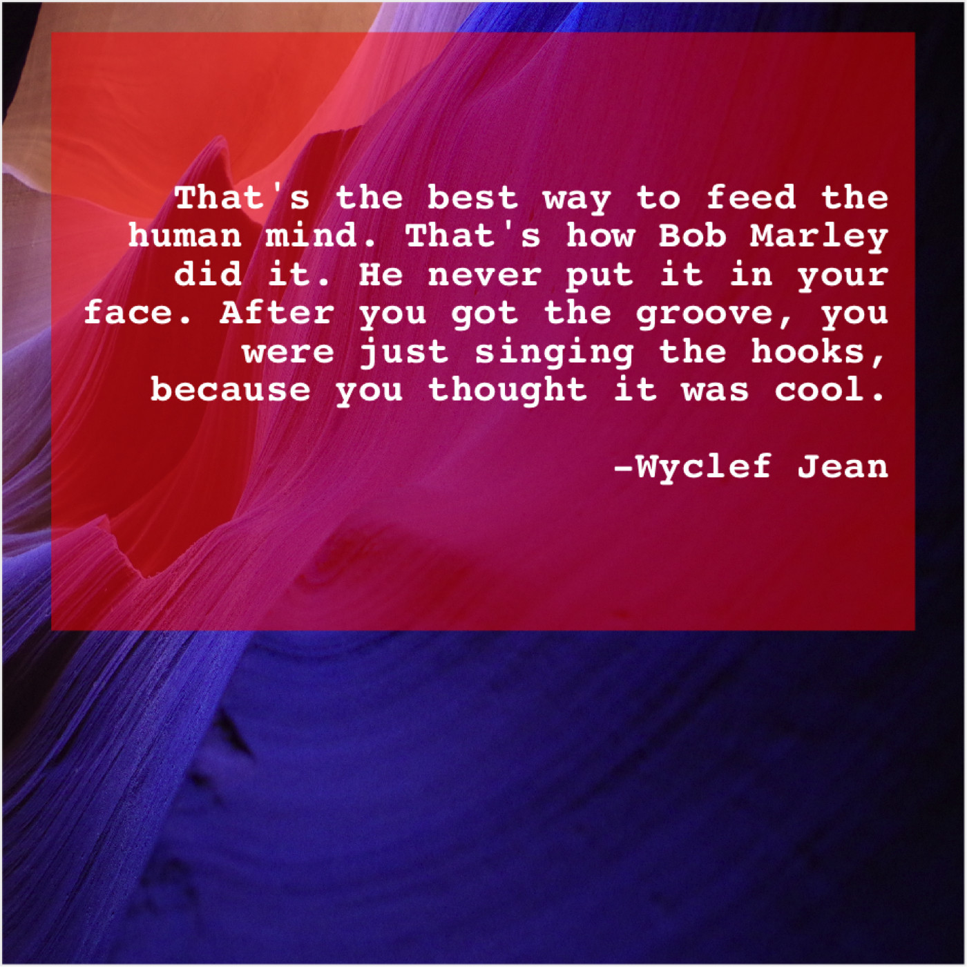 Wyclef Jean Wyclef Jean – That’s the best way to… July 14, 2019 admin “That’s the best way to feed the human mind. That’s how Bob Marley did it. He never put it in your face. After you got the groove, you were just singing the hooks, because you thought it was cool.”-Wyclef Jean