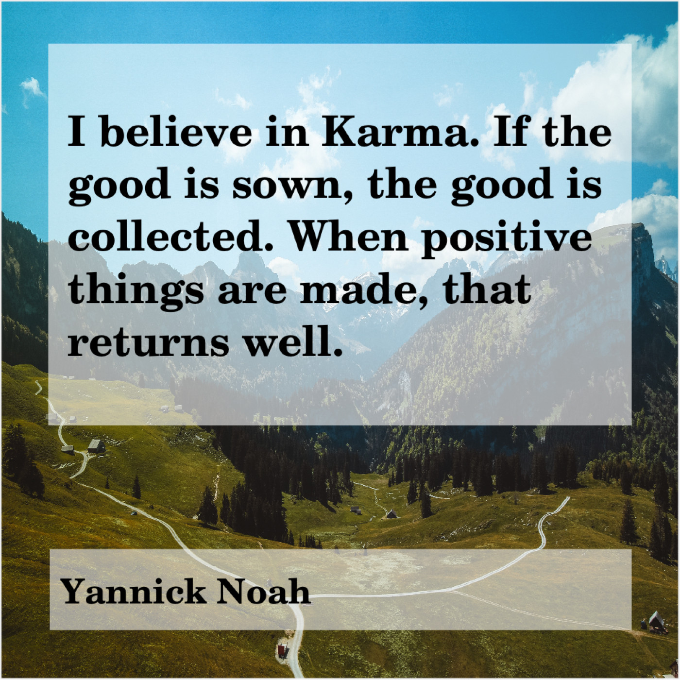 Yannick Noah Yannick Noah – I believe in Karma. If… October 6, 2019 admin “I believe in Karma. If the good is sown, the good is collected. When positive things are made, that returns well.”-Yannick Noah