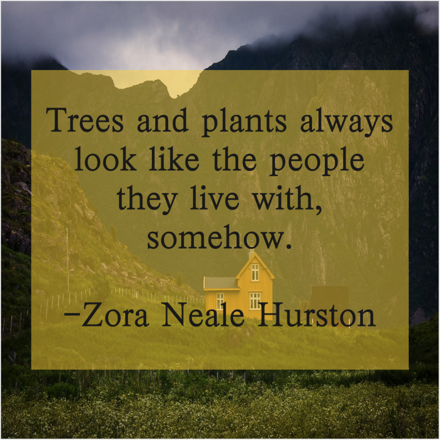 Zora Neale Hurston Zora Neale Hurston – Trees and plants always look… July 5, 2019 admin “Trees and plants always look like the people they live with, somehow.”-Zora Neale Hurston